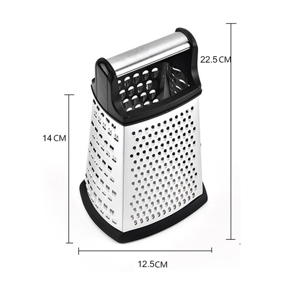 Multifunctional 4 sided design. Coarse grating; Medium grating; Fine grating and even a Slicer; all in one convenient tool.
