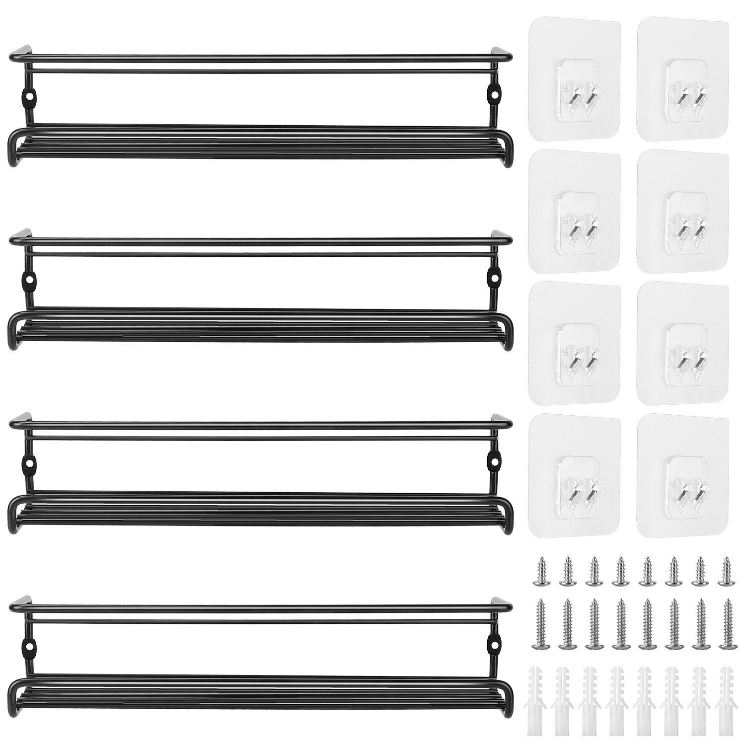 4Pcs Wall Mount Spice Racks Seasoning Herb Jar Holder Organizer Kitchen Pantry Door Storage Shelf