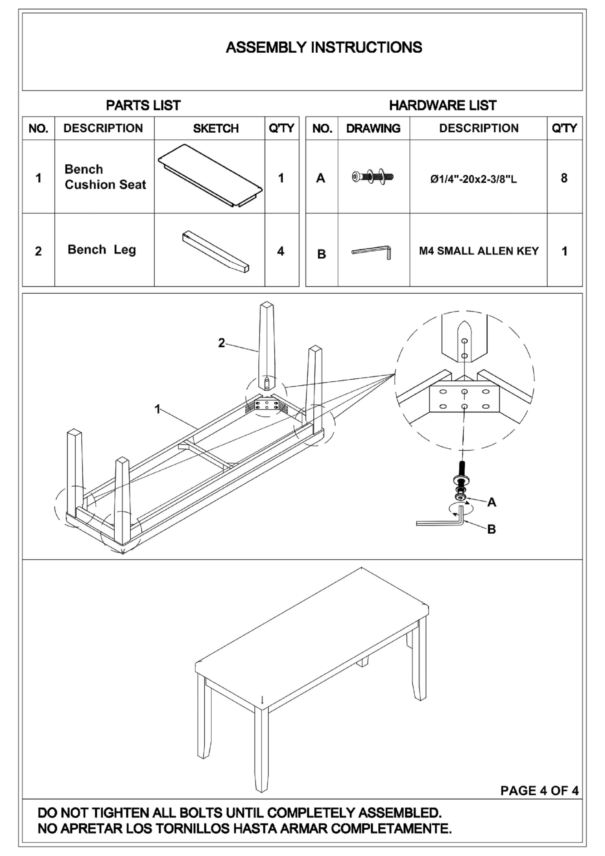 Includes Table, Bench and 4 Chairs