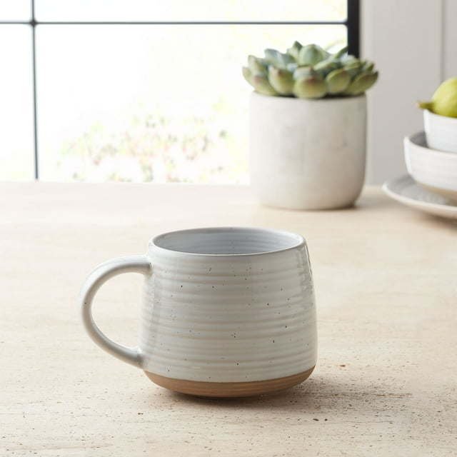 Elevate your morning cup of coffee or evening cup of tea with the Better Homes & Gardens Abbott Stoneware Mug. Crafted with high-quality, durable stoneware, this mug features a beautifully curved shape, delicate speckles, and an exposed clay bottom that exudes rustic charm. The contrast between the glazed stone and matte, exposed clay creates an eye-catching, artisanal flair that you'll love for years to come. Designed in contemporary neutral tones, this mug will easily complement your other dinnerware pieces in your personal collection. Plus, this mug is dishwasher and microwave safe to make cleanup and reheating warm drinks easy.