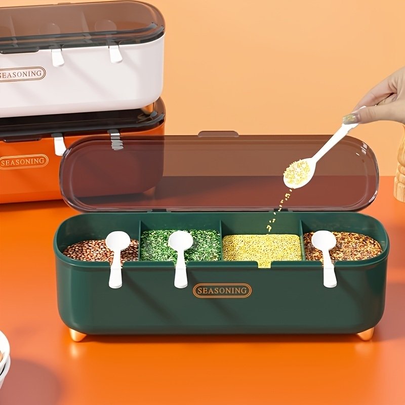 1pc; Four-grids Seasoning Box; Household Light Seasoning Jar; Seasoning Jar; Flavors Jar; Seasoning Container; Spice Storage Box For Kitchen