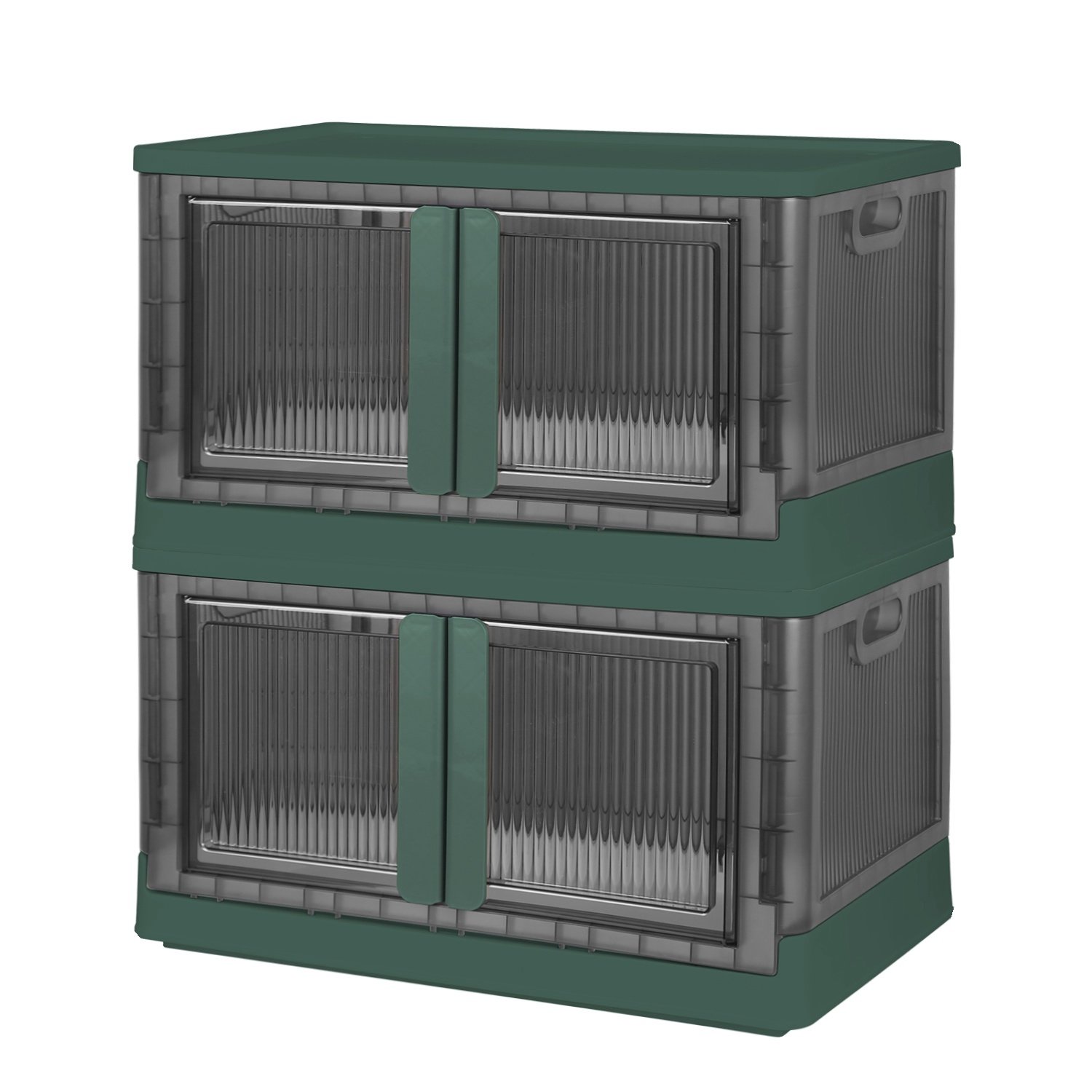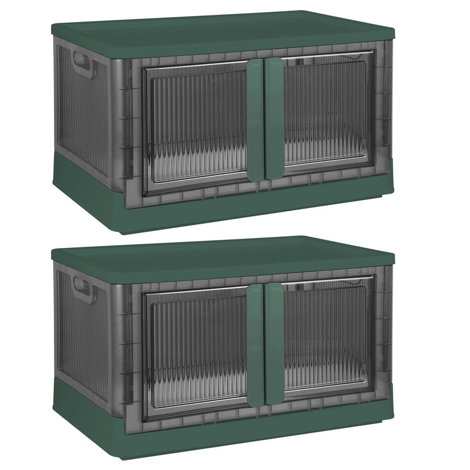2Pcs 72L Foldable Storage Bins with Lid Collapsible Stackable Closet Organizer Containers with Front Door Lock 4Pcs Wheels