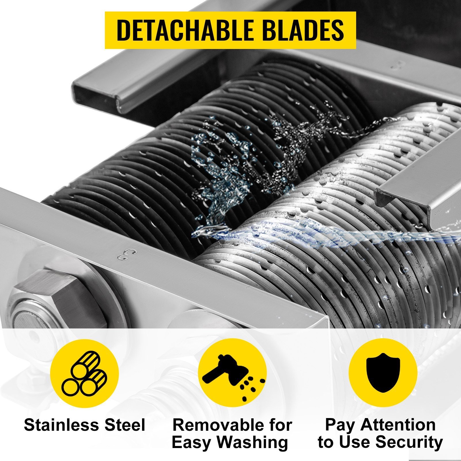 The stainless steel blade is designed by an external hanging style which is removable for convenient washing. Also easy to install. The blade distance is 3 mm.